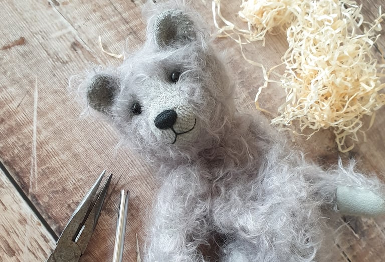 Important note: Heirloom-style bears are not generally considered to be suitable for children to play with, due to the type of fillings, jointing, and glass eyes. If you wish to make a bear for a child, please let me know. We can use safety joints, safety eyes and child-safe fillings. It is a slightly different experience but you can observe my demonstrations of the more traditional techniques.